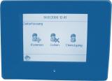 Farb-Anzeigemodul 5,7" mit berührungssensitiver Oberfläche (Touch) als Benutzereingabemedium. Mit eingebautem MULTIMASTER®-Lesermodul, freiprogrammierbar und somit für verschiedene Anwendungsfälle einsetzbar (wie Zeiterfassung, Betriebsdatenerfassung, Zustandsvisualisierung, Datenbankabfragen, Benutzereingaben, usw.). Hochwertiges Design-Gehäuse aus Edelstahl und schwarzem Plexiglas.